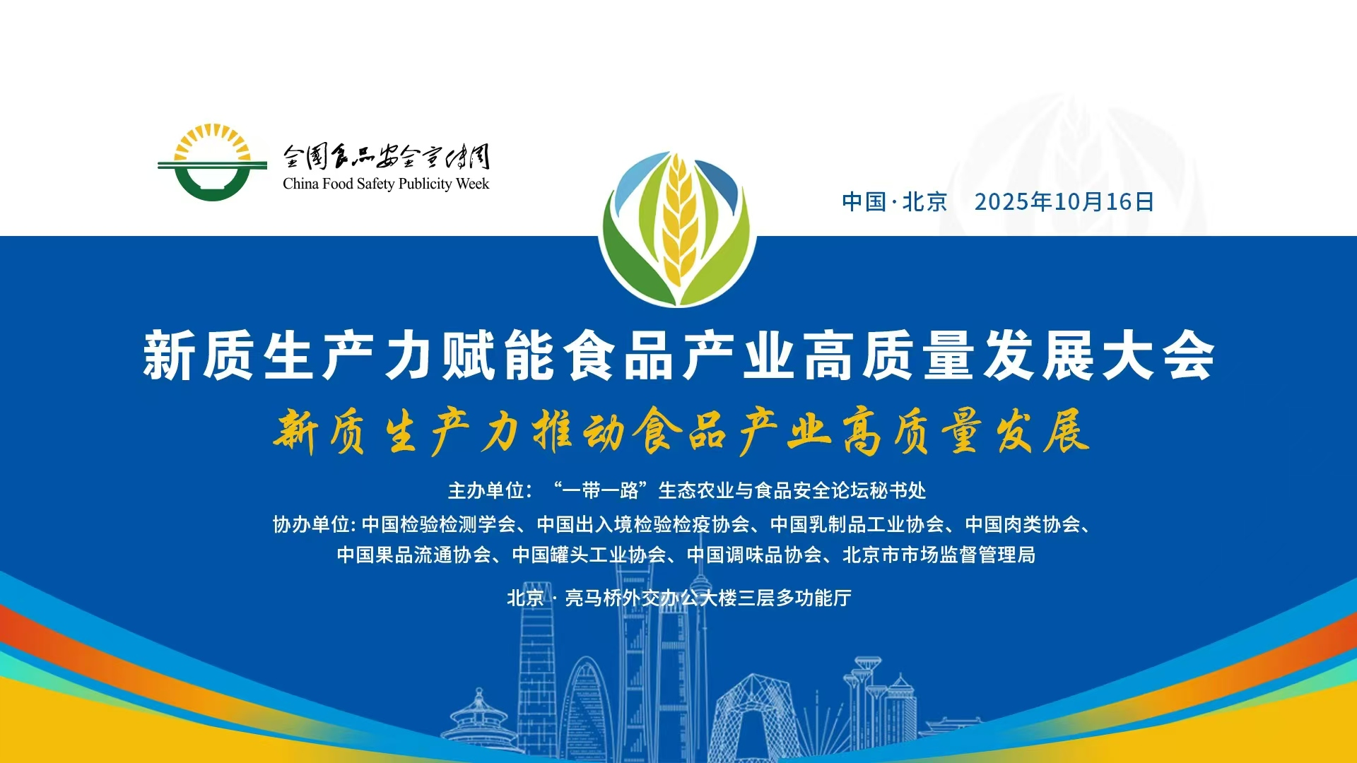 2025年10月16日,为深入贯彻落实《中共中央、国务院关于深化改革加强食品安全工作的意见》精神,作为2025年全国食品安全宣传周国家层面重点活动之一,由“一带一路”生态农业与食品安全论坛秘书处主办,中国检验检测学会、中国出入境检验检疫协会、中国乳制品工业协会、中国肉类协会、中国果品流通协会、中国罐头工业协会、中国调味品协会、北京市市场监督管理局等单位共同协办的“新质生产力赋能食品产业高质量发展大会”在北京外交办公大楼三层多功能厅成功举行。
